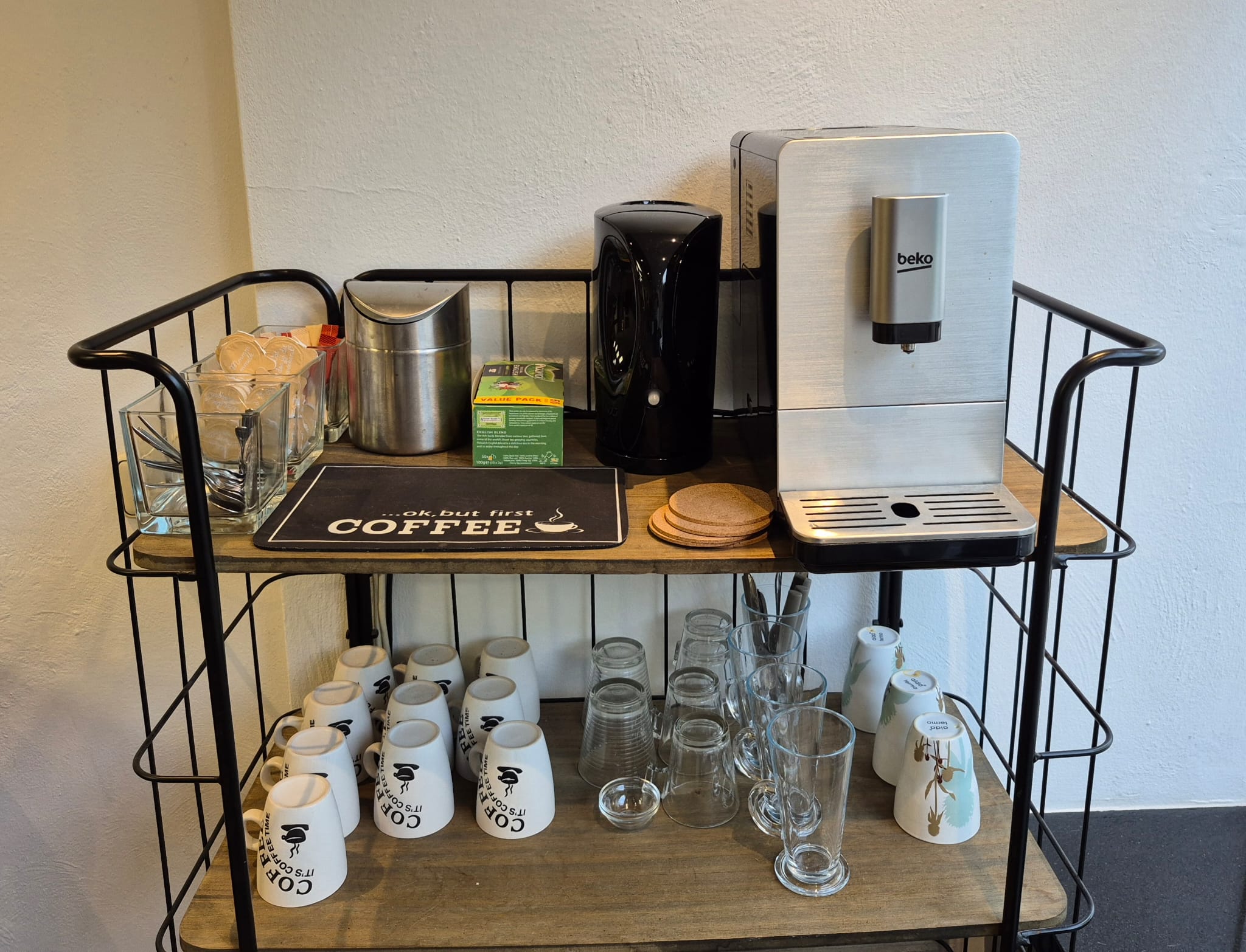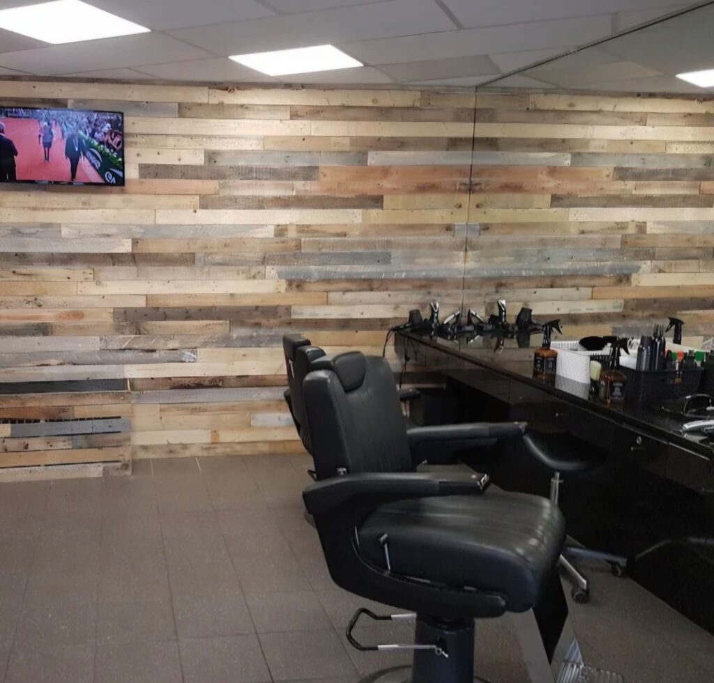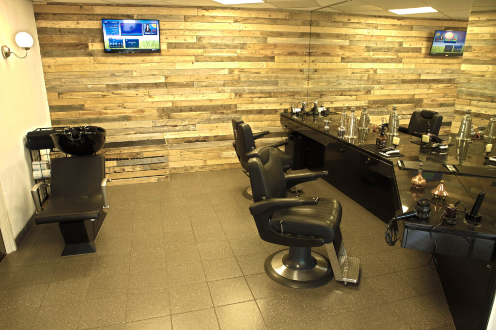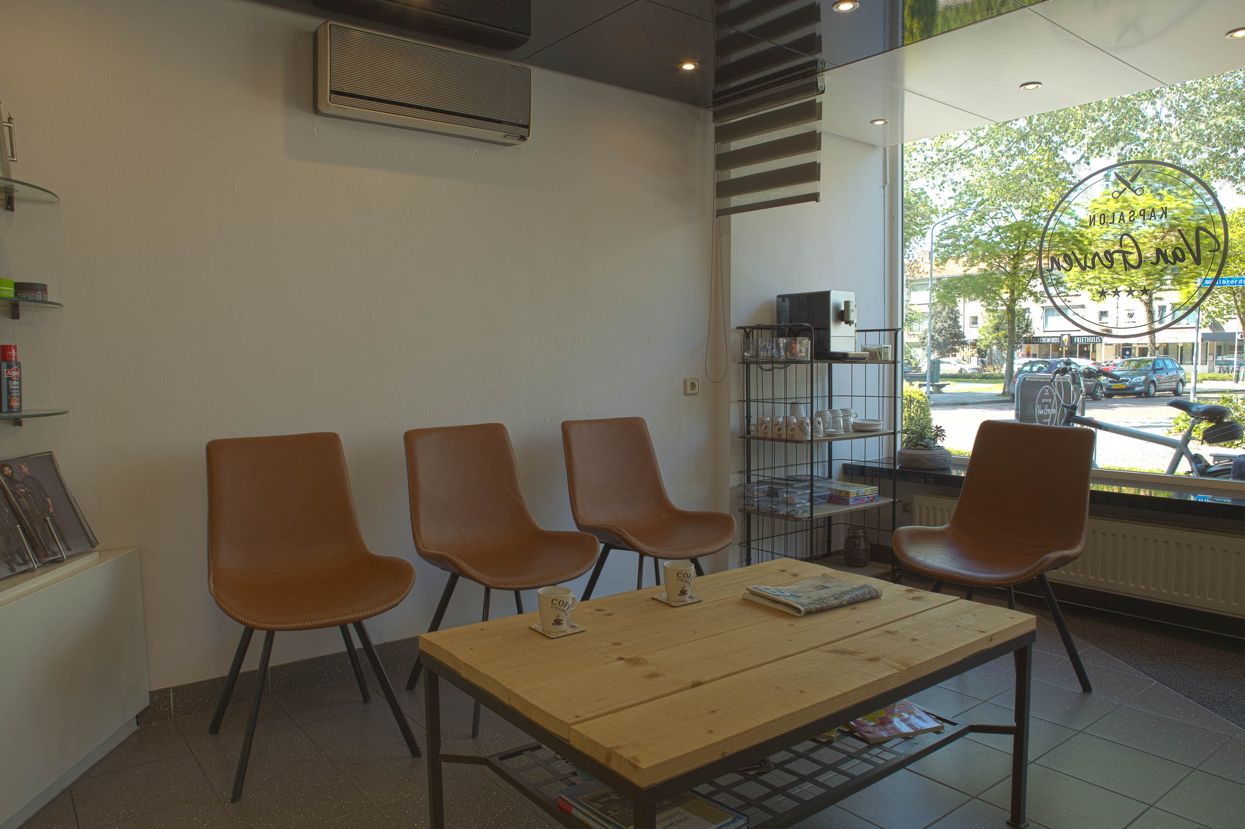 Leuke wachtcorner met comfortabele fauteuils en natuurlijk met gratis Wifi, koffie en thee. Echte klassieke heren pompstoelen, een lig wastafel en de TV maken onze salon compleet.